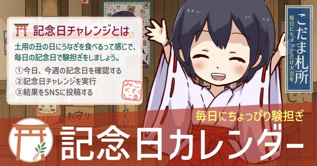 「記念日チャレンジ」とは、毎日の記念日に合わせて、ちょっとした験担ぎを楽しむチャレンジです。
